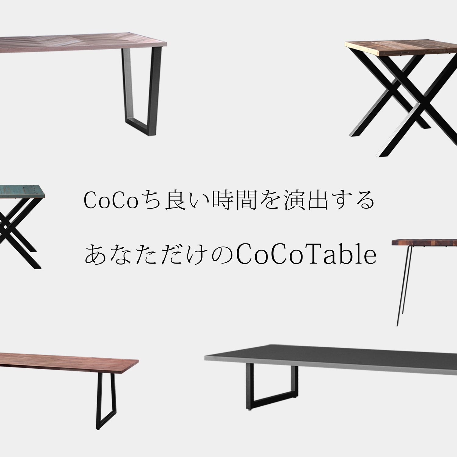 CoCo kaguでは、オリジナルのテーブルを製作できます。天板と脚を自由に組み合わせて、素材やカラーをお好みで選べるので、住まいにしっくりくるテーブルに巡り合えます。
